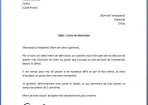 Ou le compléter et le contrôler au fur et à mesure de vos réponses dans l. Pour démissionner, il est conseillé d'envoyer une lettre de démission par courrier recommandé avec accusé de réception à son employeur. Lorsqu'il est exprimé en mois, il se termine la veille de la date figurant sur la lettre de licenciement ou sur la lettre de démission. Lettre de démission du salarié. Il doit rester dans l'entreprise durant une certaine période, qu'on appelle préavis ou parfois délai congé. Nous vous conseillons néanmoins d'envoyer une lettre de démission par recommandé avec accusé de réception afin de ne pas créer de confusion sur la date de départ et le respect d'un éventuel préavis. Le délai de préavis peut être réduit sur accord. Je respecterai naturellement mon délai de préavis de x semaines/mois, lequel débutera le 1er juillet 20xx. Ce simulateur vous permet de personnaliser le modèle de lettre de démission. Votre démission n'a pas à être acceptée par votre employeur, elle s'impose à lui (2). Un employeur est régulièrement confronté au départ volontaire de ses employés.afin de limiter le préjudice lié au caractère imprévisible de la démission de cdi, le respect d'un préavis est en principe obligatoire pour votre salarié. Le préavis ne commence à courir que le lundi qui suit, soit le lundi 26 janvier 2015. Même s'il a travaillé depuis plus de 5 ans pour un même employeur ;